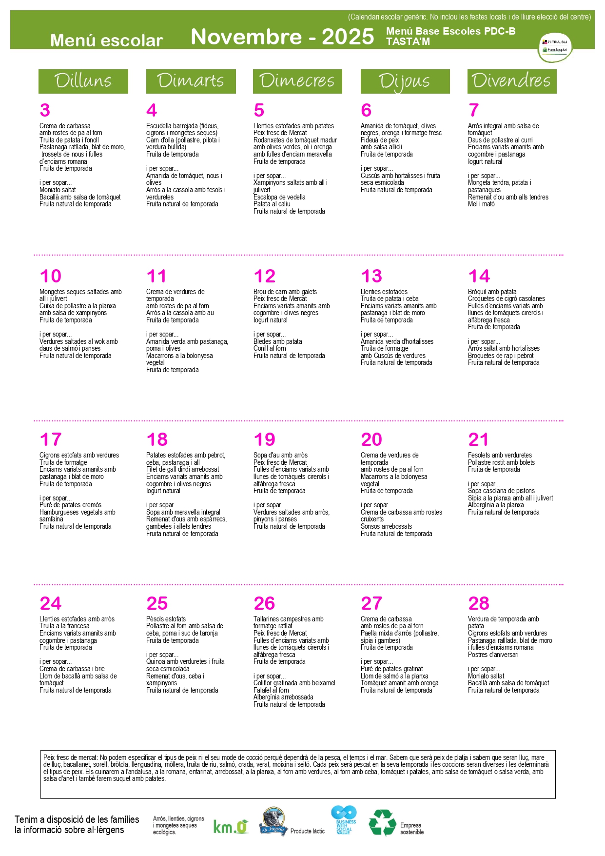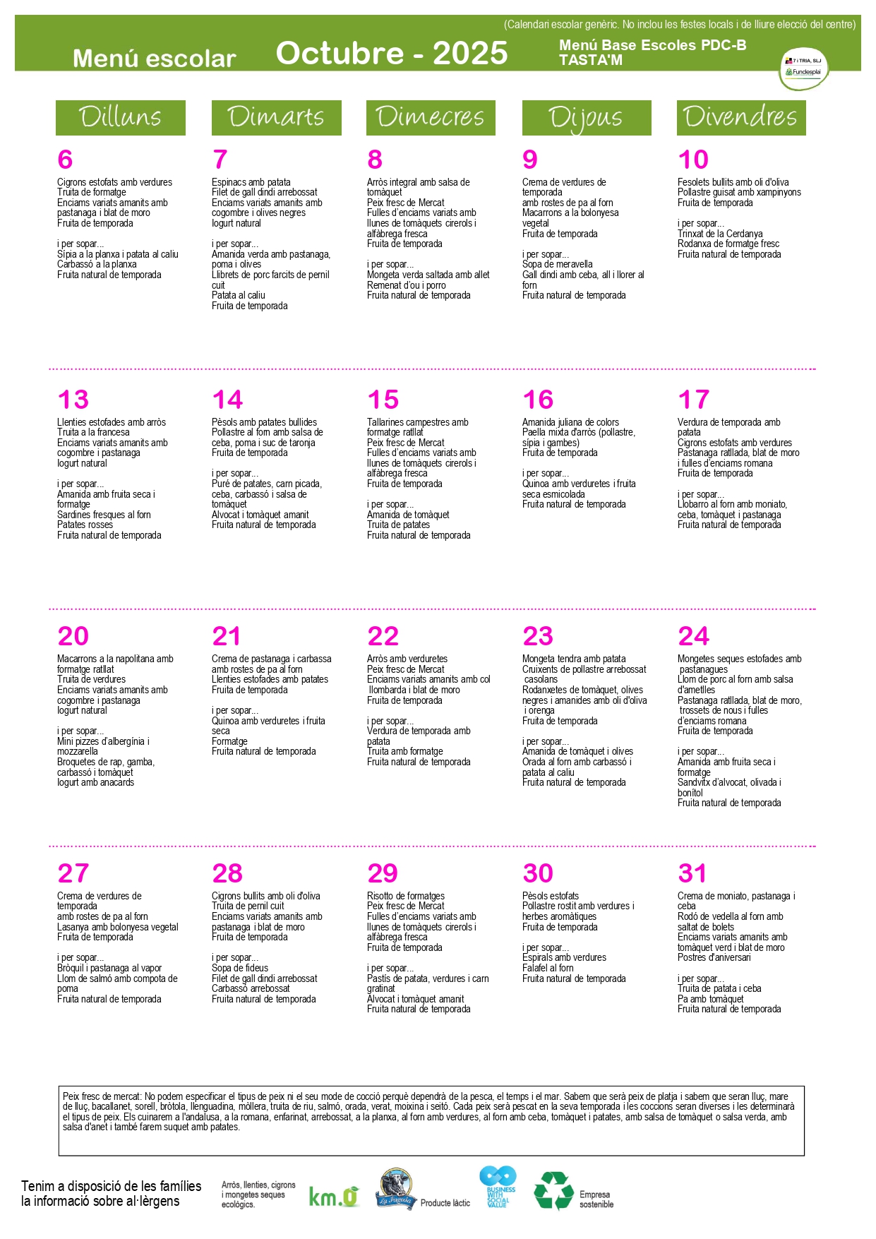 A continuació, podeu veure els menús d’aquest tercer trimestre del curs 24-25.